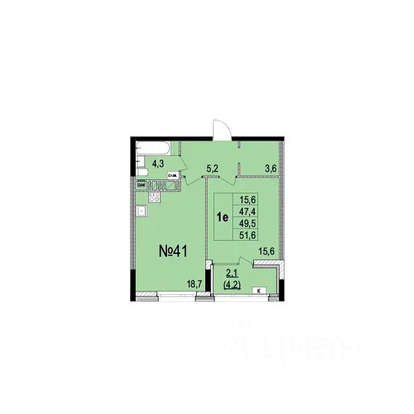 Общая площадь49,5 м2