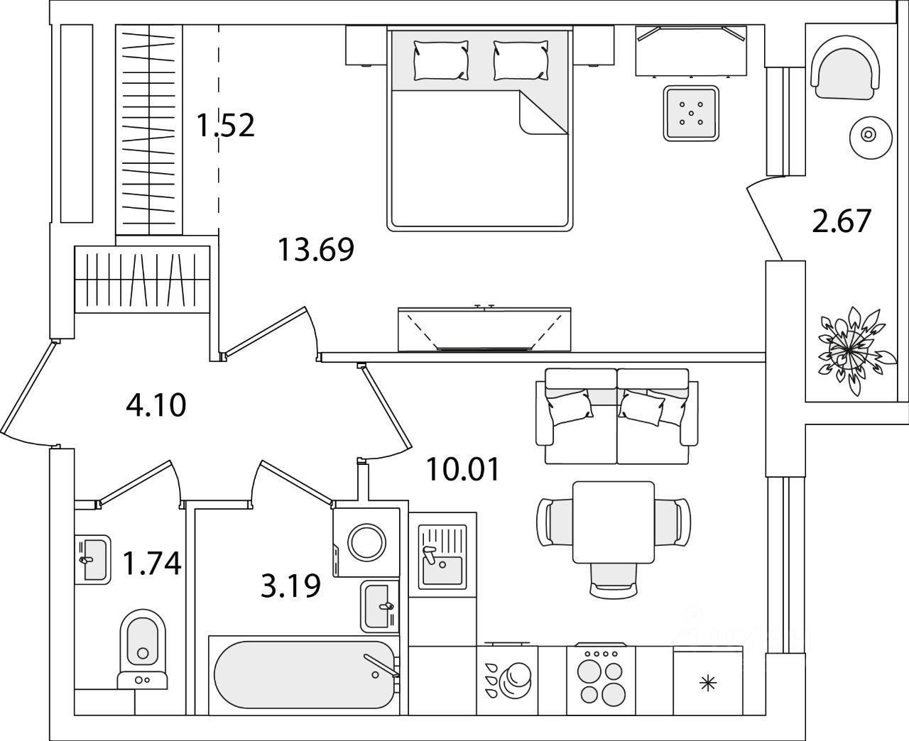 Общая площадь35,59 м2