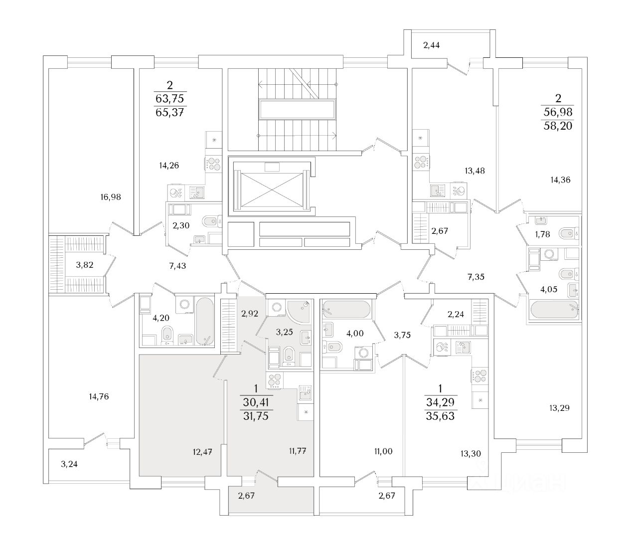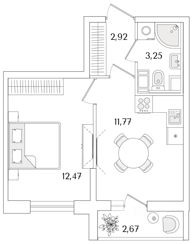 Общая площадь31,75 м2