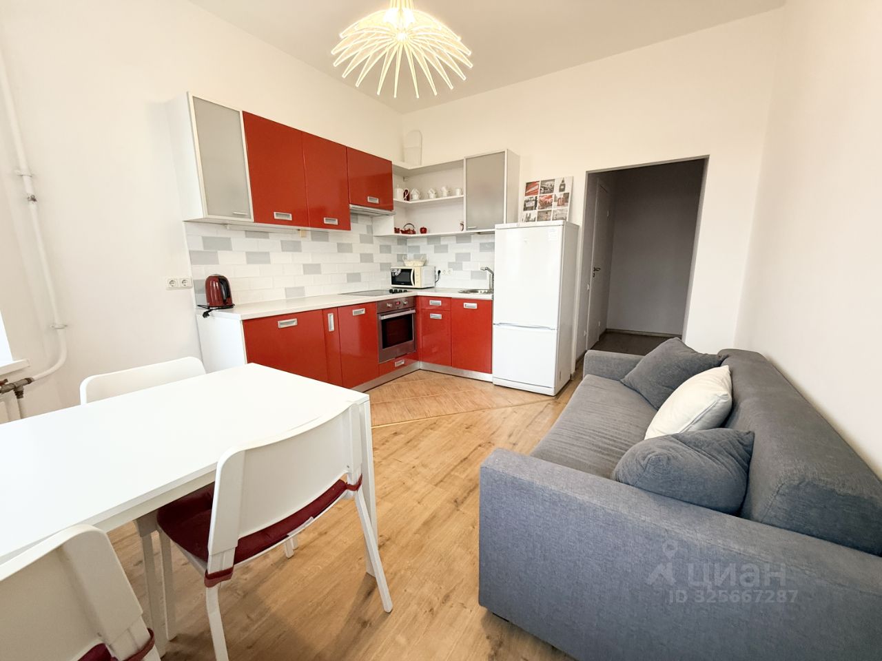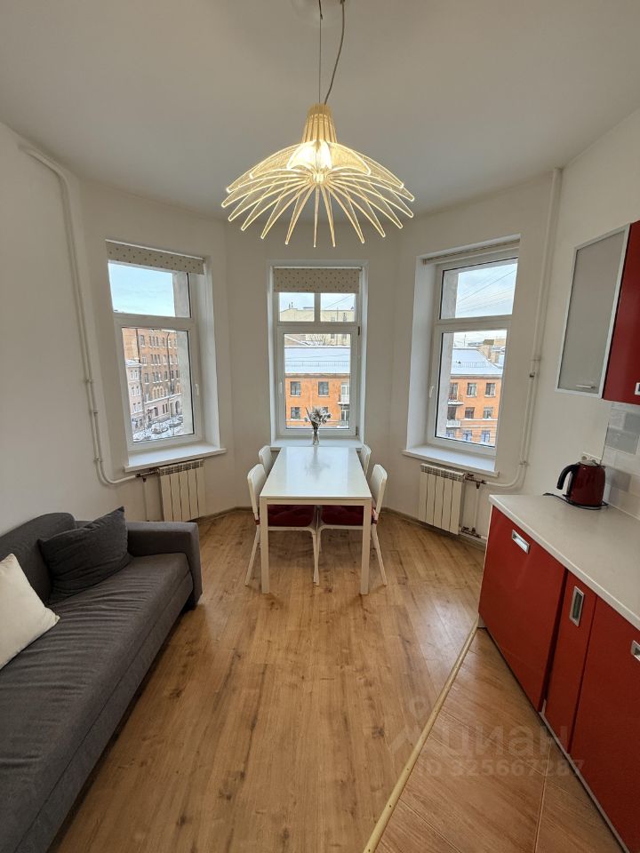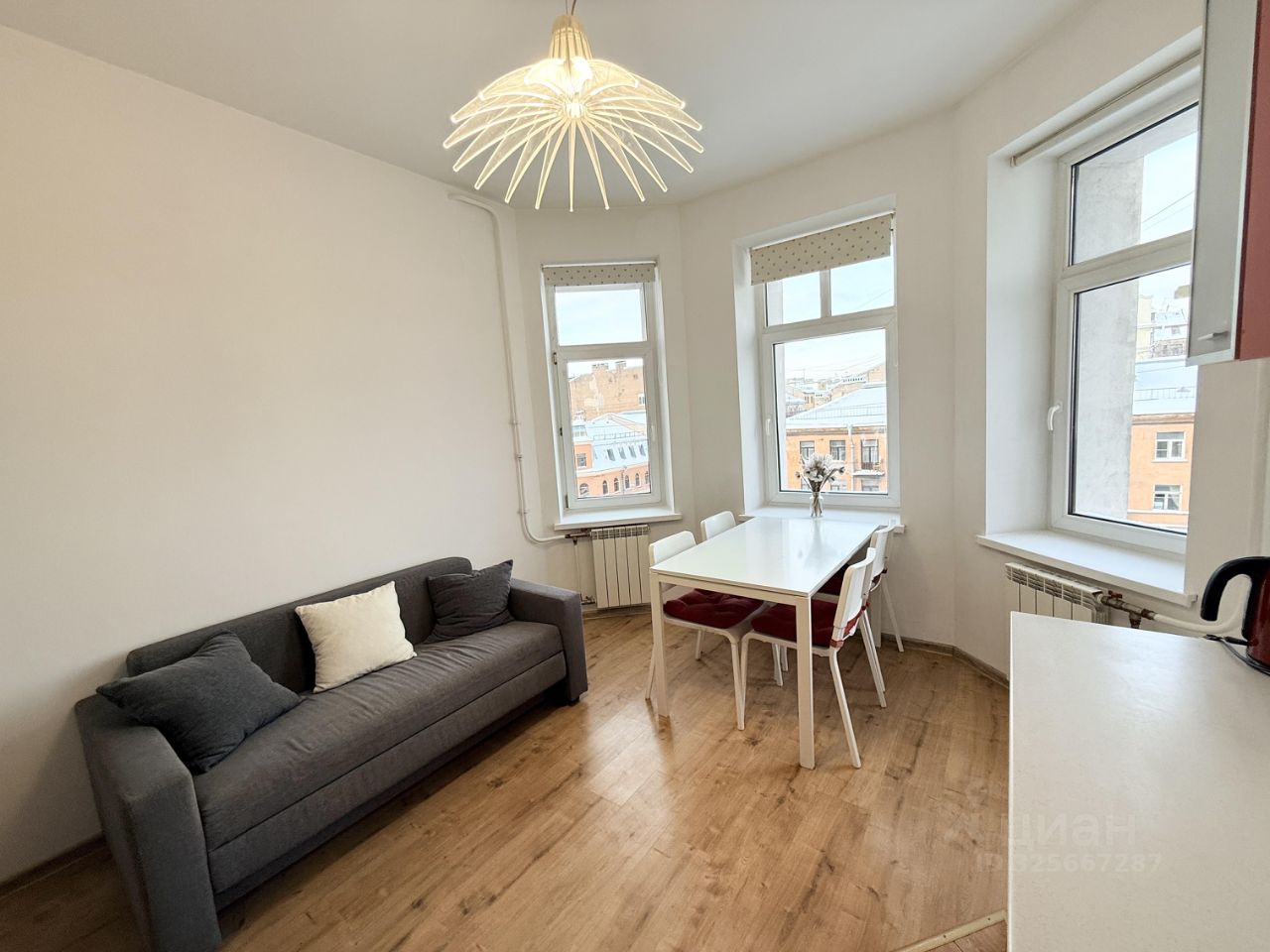 Квартира находится на 5 этаже 8-этажного дома. Окна выходят на тихие улицы Можайская и Клинский проспект. Площадь — 58 кв.м. Продуманная планировка: просторная прихожая, две изолированные комнаты, большая кухня с эркером, наполняющим помещение светом.