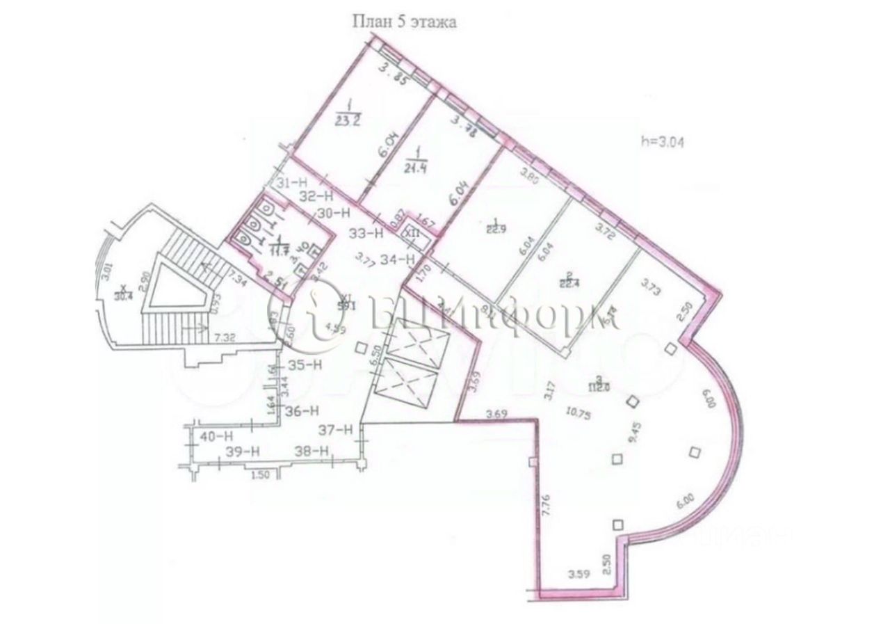 Планировка и отделка: - Функциональные зоны: ресепшен, open-space пространство для сотрудников, 4 отдельных кабинета для руководства и переговоров, кладовая для хранения. - Закрытый блок: пространство изолировано, вход — по магнитным пропускам. - Благоустройство: собственная кухня-столовая с раковиной и собственная санузел группа. - Отделка: пол — кварцвиниловая плитка, потолки — подвесные ''Армстронг'', стены подготовлены под окраску.