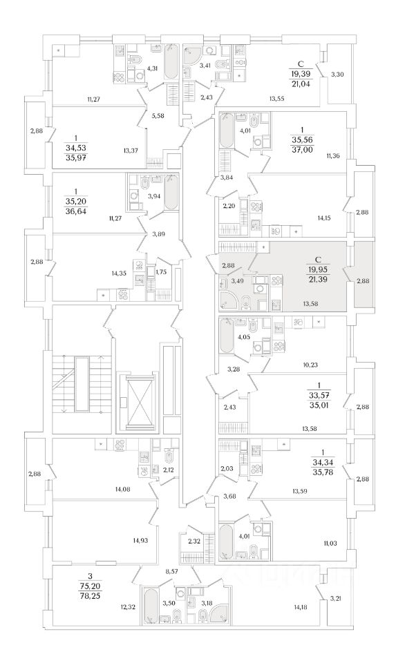 Общая площадь21,39 м2