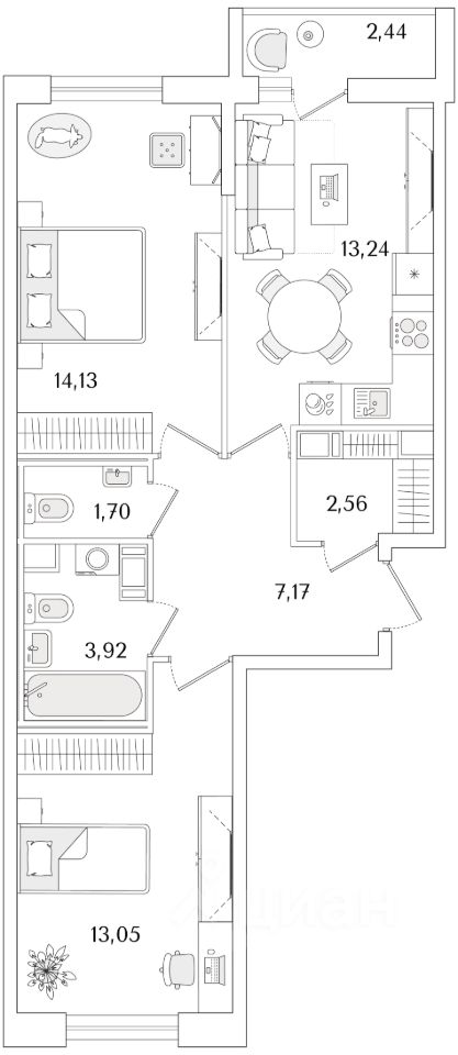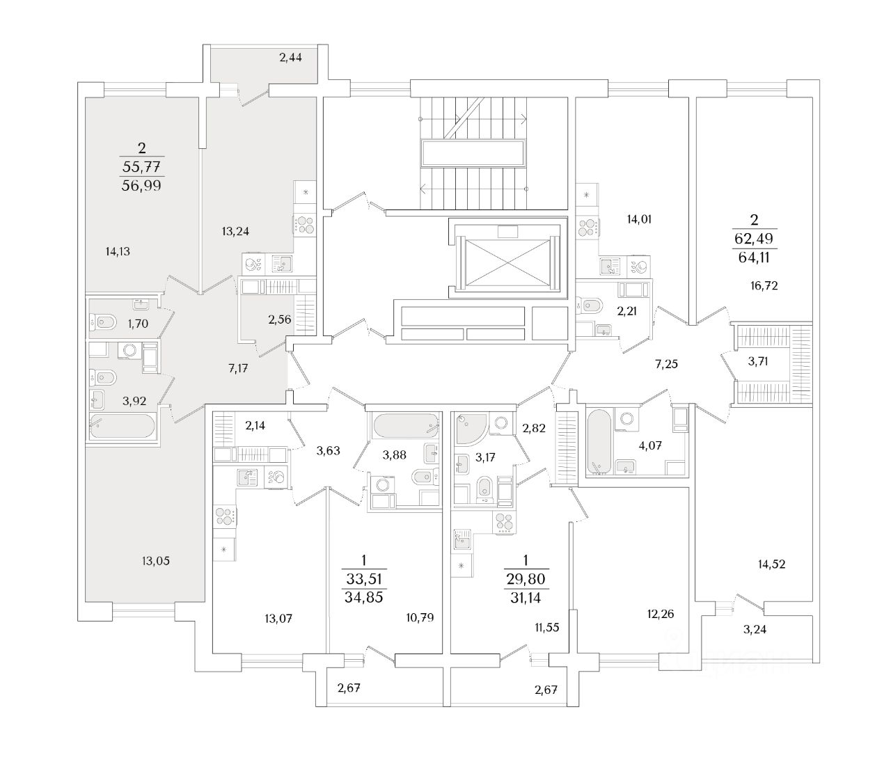 Продаётся 2к.кв. в ЖК Кинопарк от застройщика Холдинг ''РСТИ'' (Росстройинвест). Квартира находится в 9 этажном доме, в Очередь 2, Корпус 1 на 7 этаже. Общая площадь квартиры 56,99 кв.м.