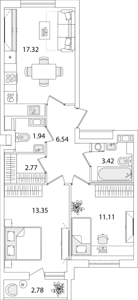 Продаётся 2к.кв. в ЖК Кинопарк от застройщика Холдинг ''РСТИ'' (Росстройинвест). Квартира находится в 9 этажном доме, в Очередь 1, Корпус 1 на 9 этаже. Общая площадь квартиры 57,84 кв.м.