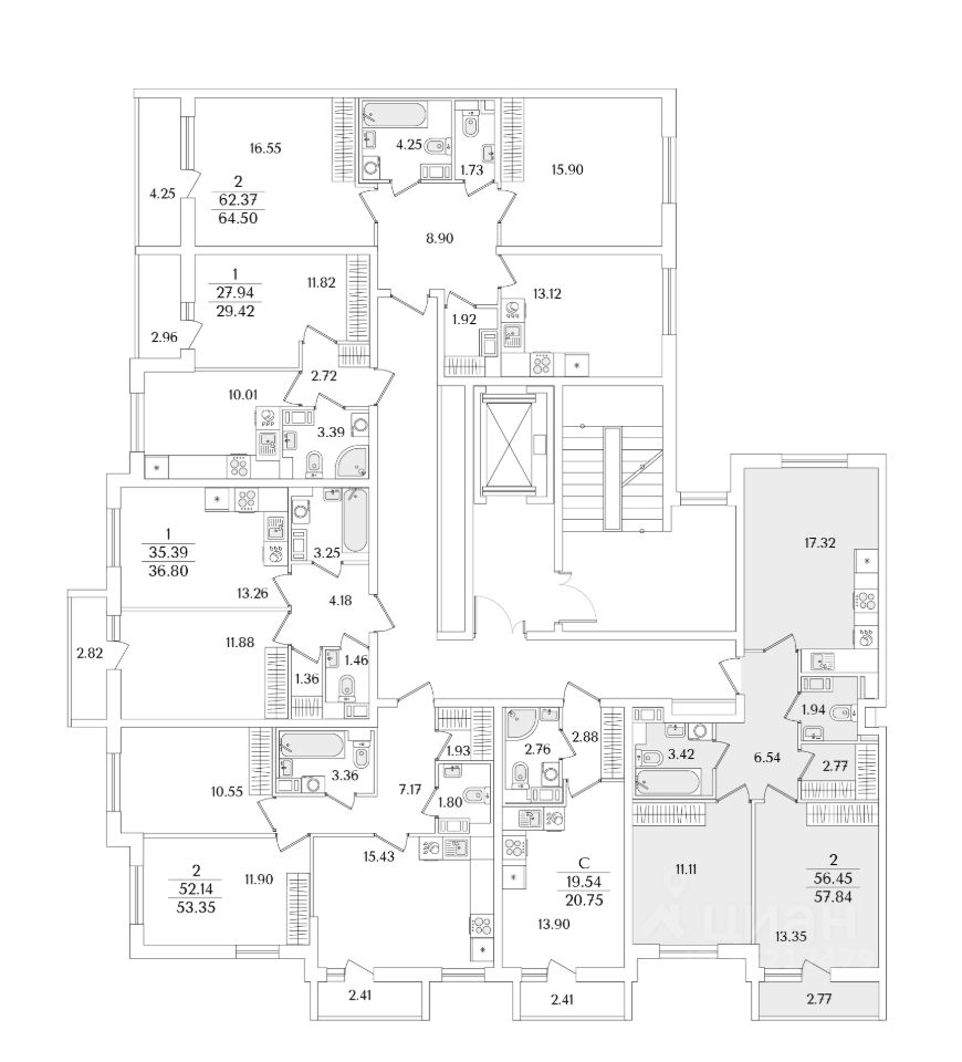 Общая площадь57,84 м2