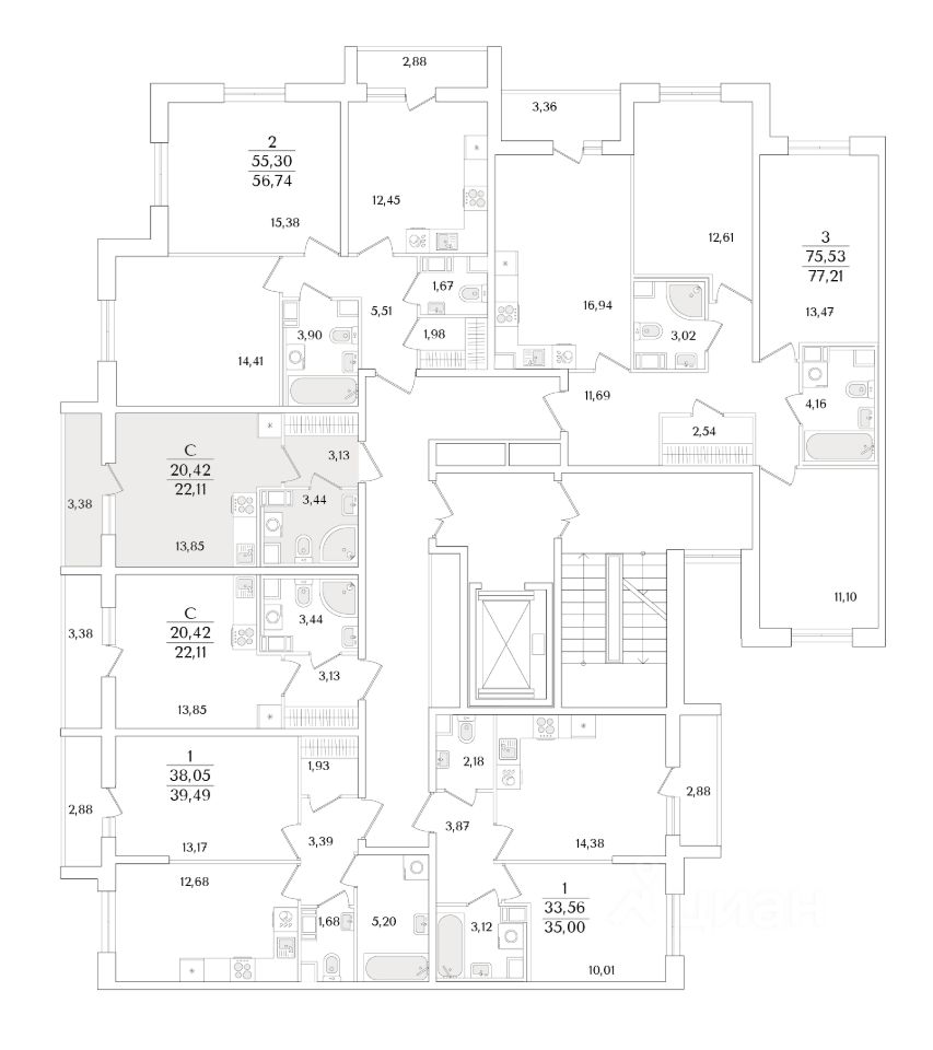 Общая площадь22,11 м2
