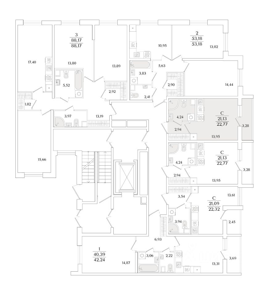 Общая площадь22,77 м2