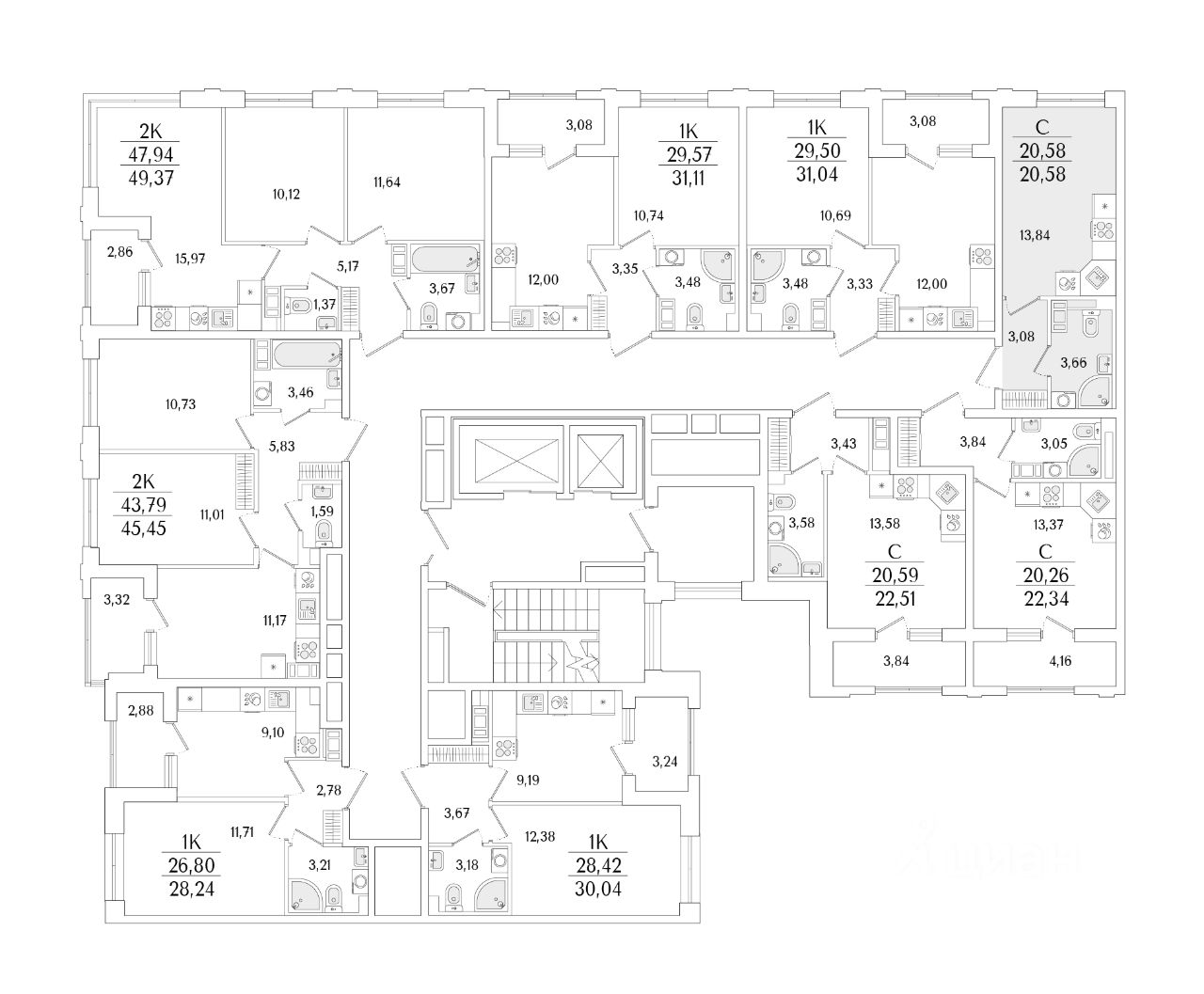 Кухни-гостиные с угловым остеклением. Просторные кухни-гостиные площадью более 20 м². Студии с двумя окнами. Ванные с окном Clerestory. Кухни-гостиные с выделенной нишей под кухню. Спальни с выделенной многофункциональной зоной, в которой можно организовать свой идеальный уголок. Квартиры с просторными лоджиями правильной квадратной формы.
