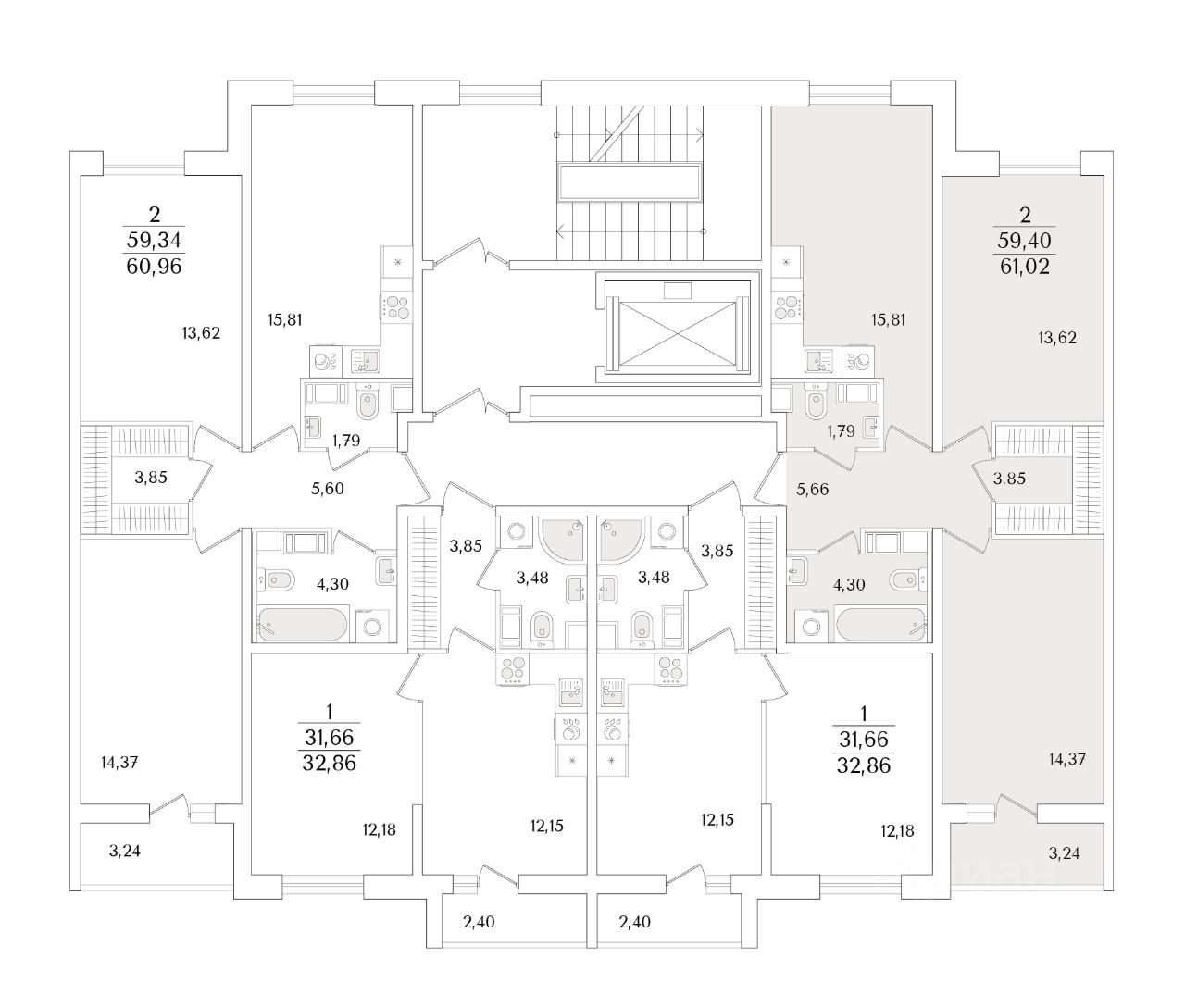 Общая площадь61,02 м2