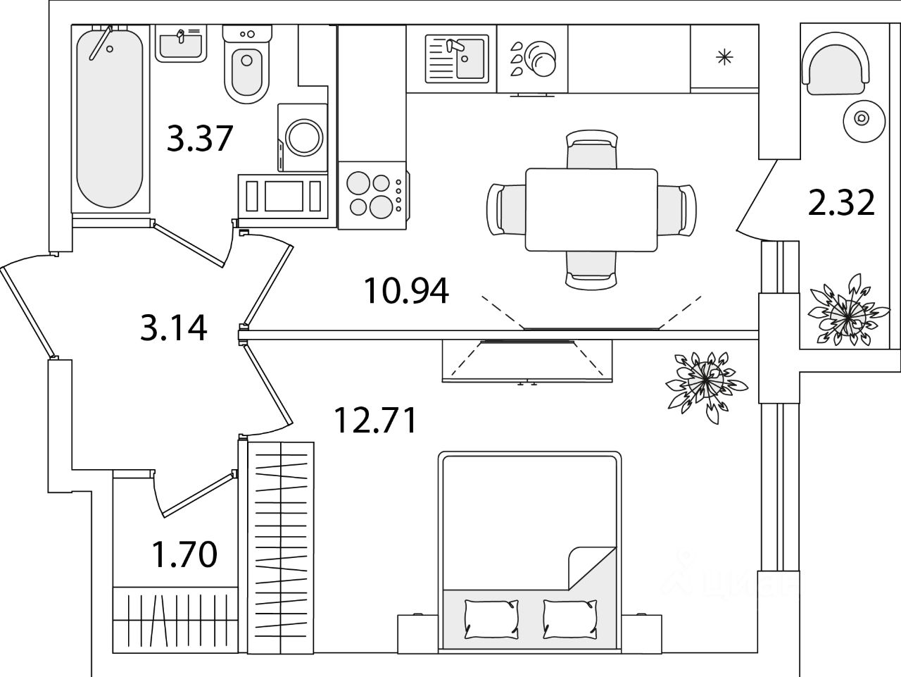 Общая площадь33,02 м2