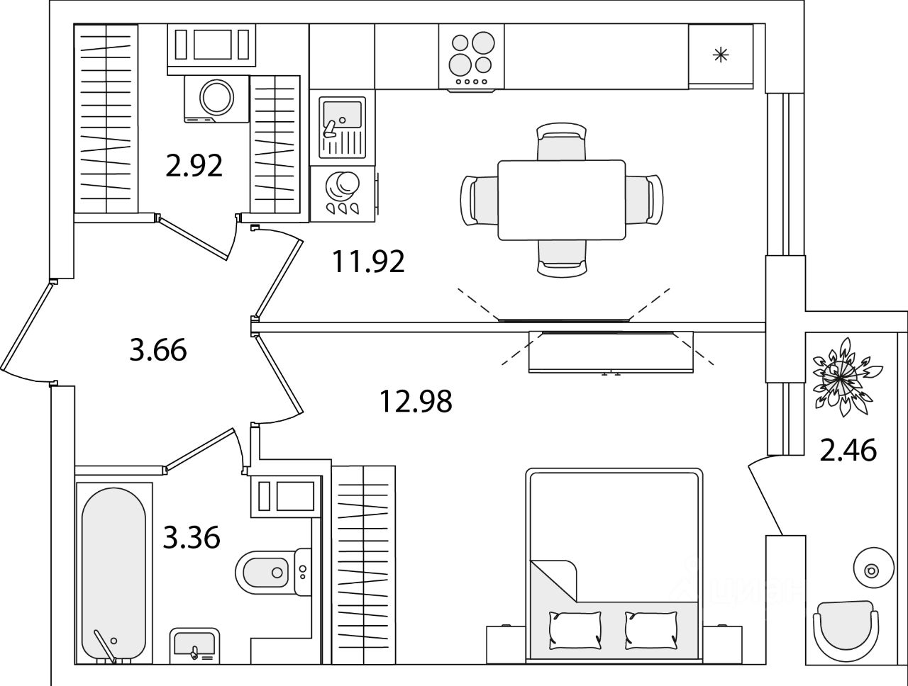 Общая площадь36,07 м2