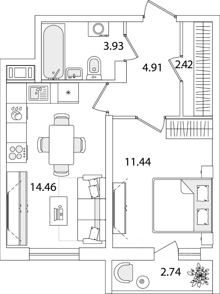 Жилая площадь11,4 м2