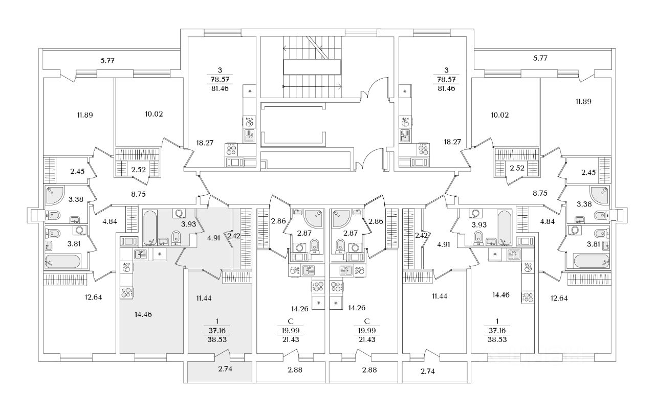 Общая площадь38,53 м2