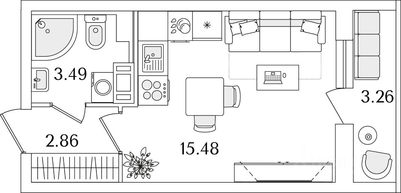 Жилая площадь15,5 м2