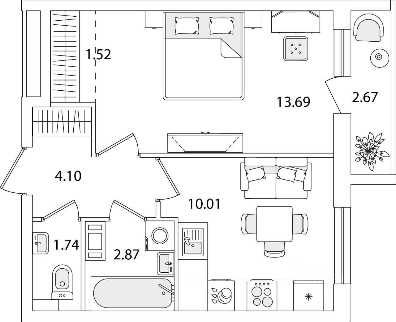 Жилая площадь13,7 м2