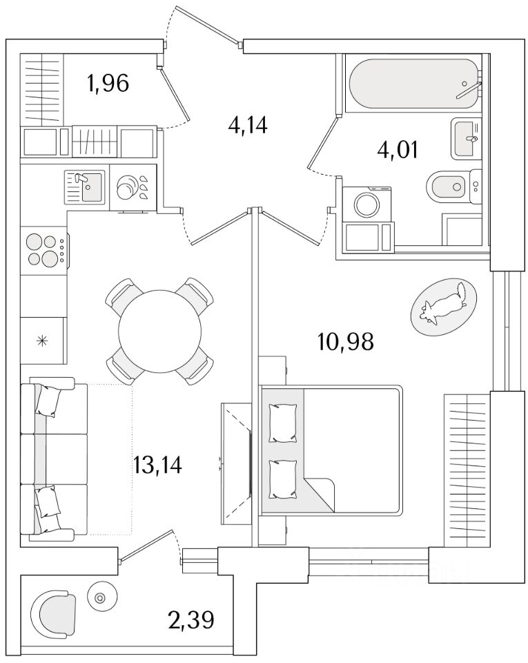Общая площадь35,43 м2