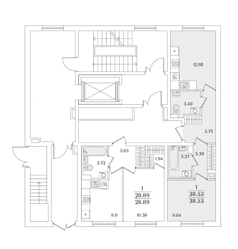 Общая площадь38,53 м2