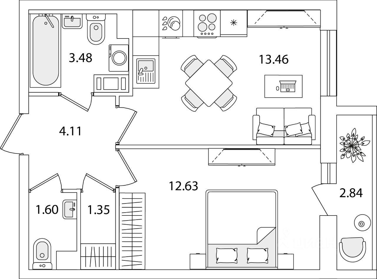 Жилая площадь12,6 м2