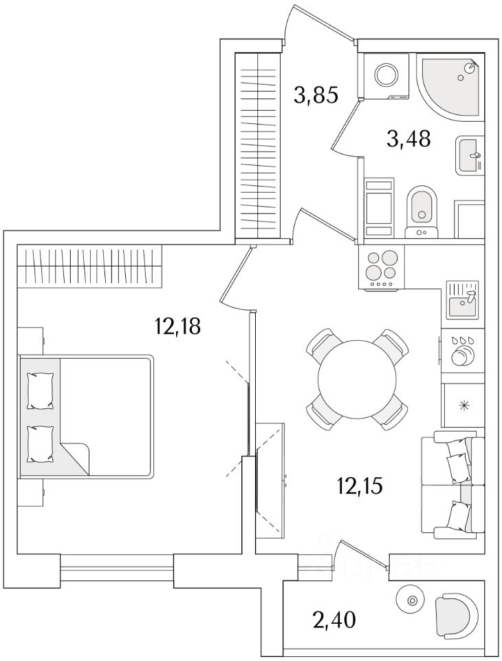 Жилая площадь12,2 м2