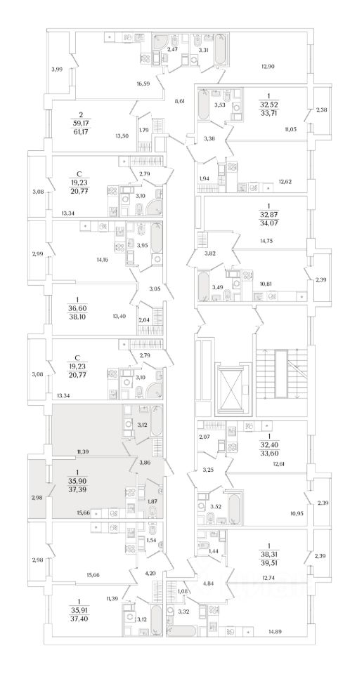 Общая площадь37,39 м2