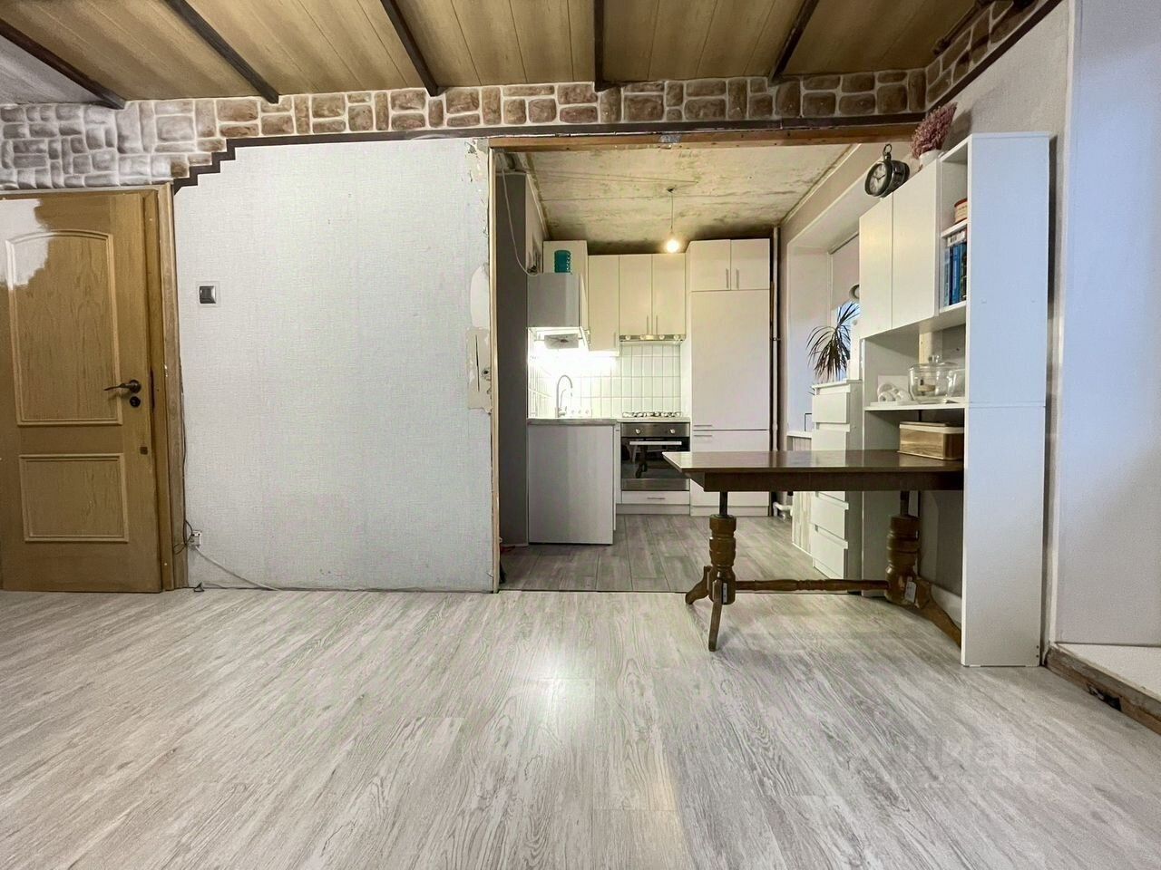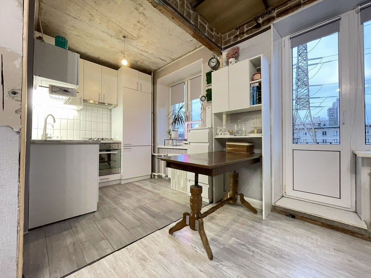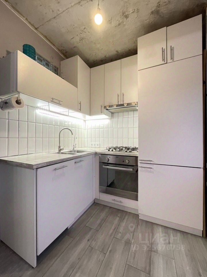 Остается кухня со встроенной техникой (варочная панель, духовой шкаф, посудомоечная машина, холодильник).