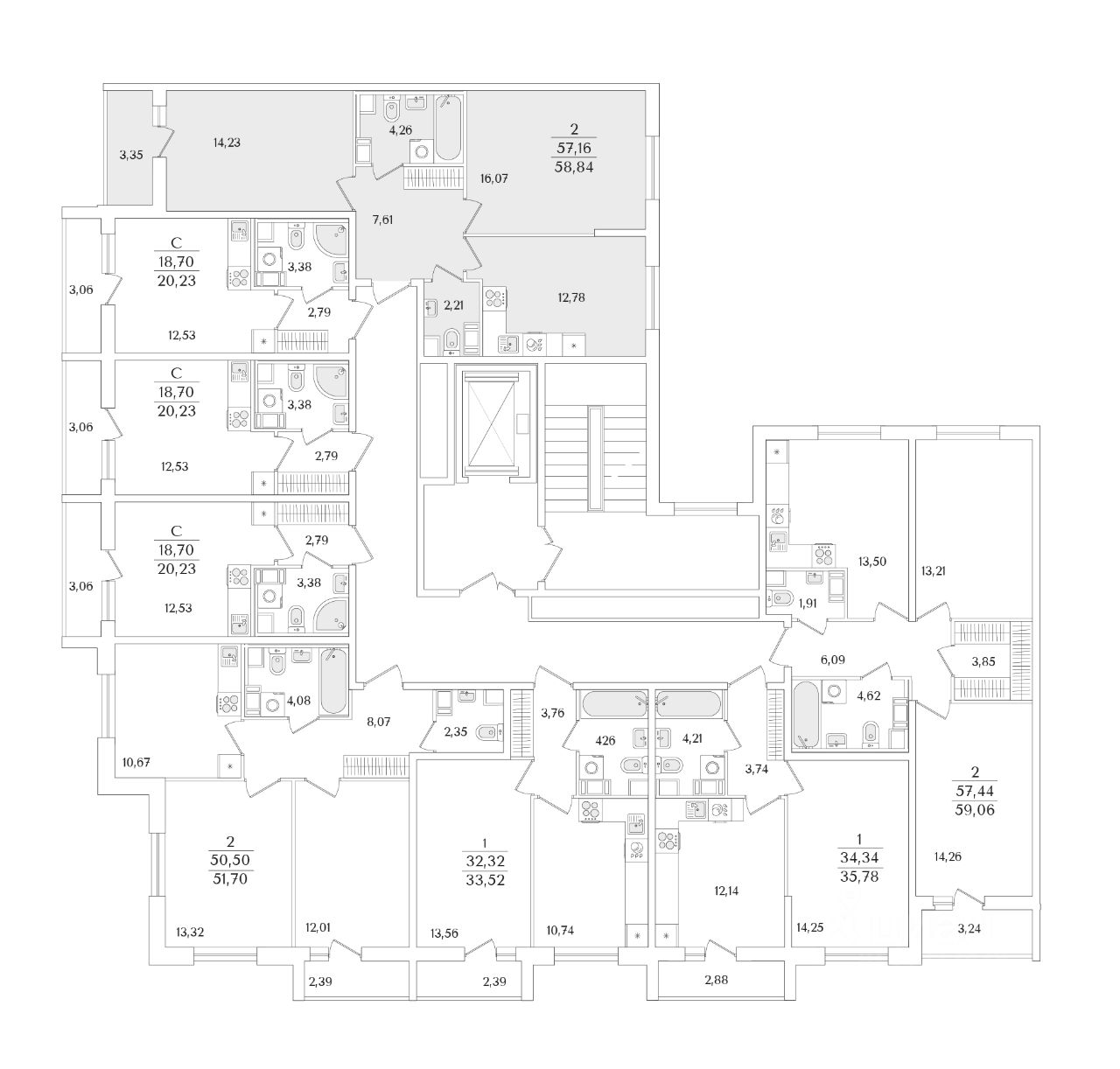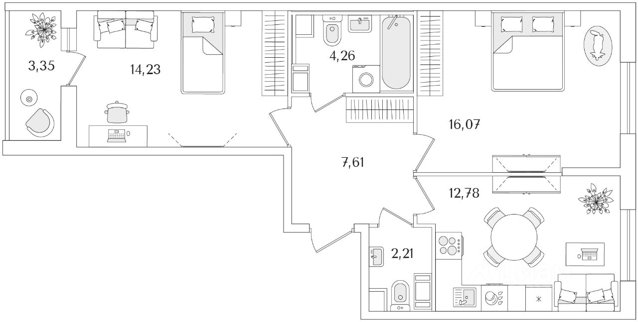 Общая площадь58,84 м2
