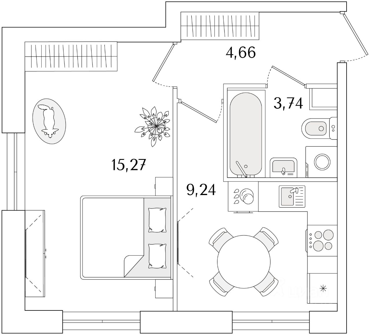 Жилая площадь15,3 м2
