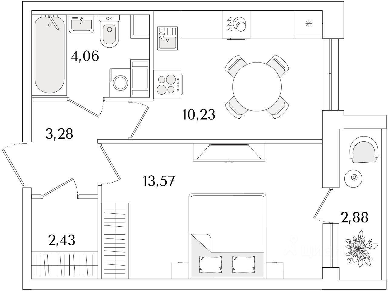 Жилая площадь13,6 м2