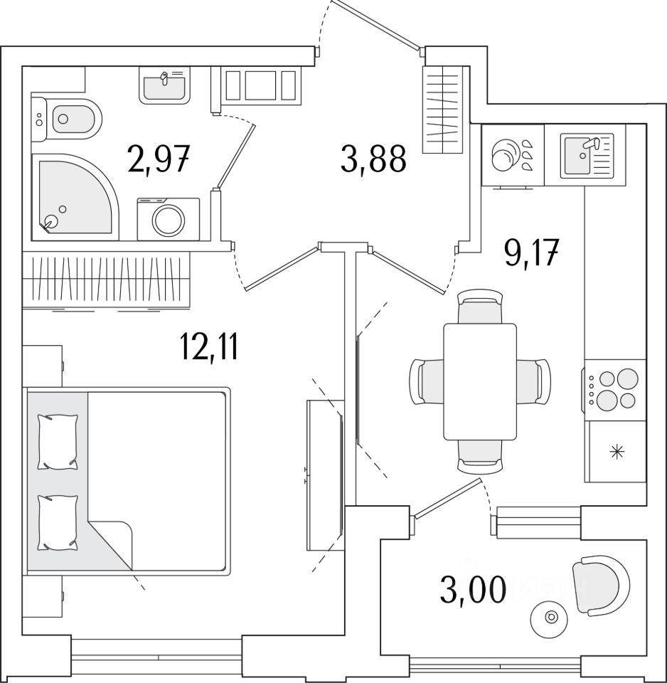 Жилая площадь12,1 м2