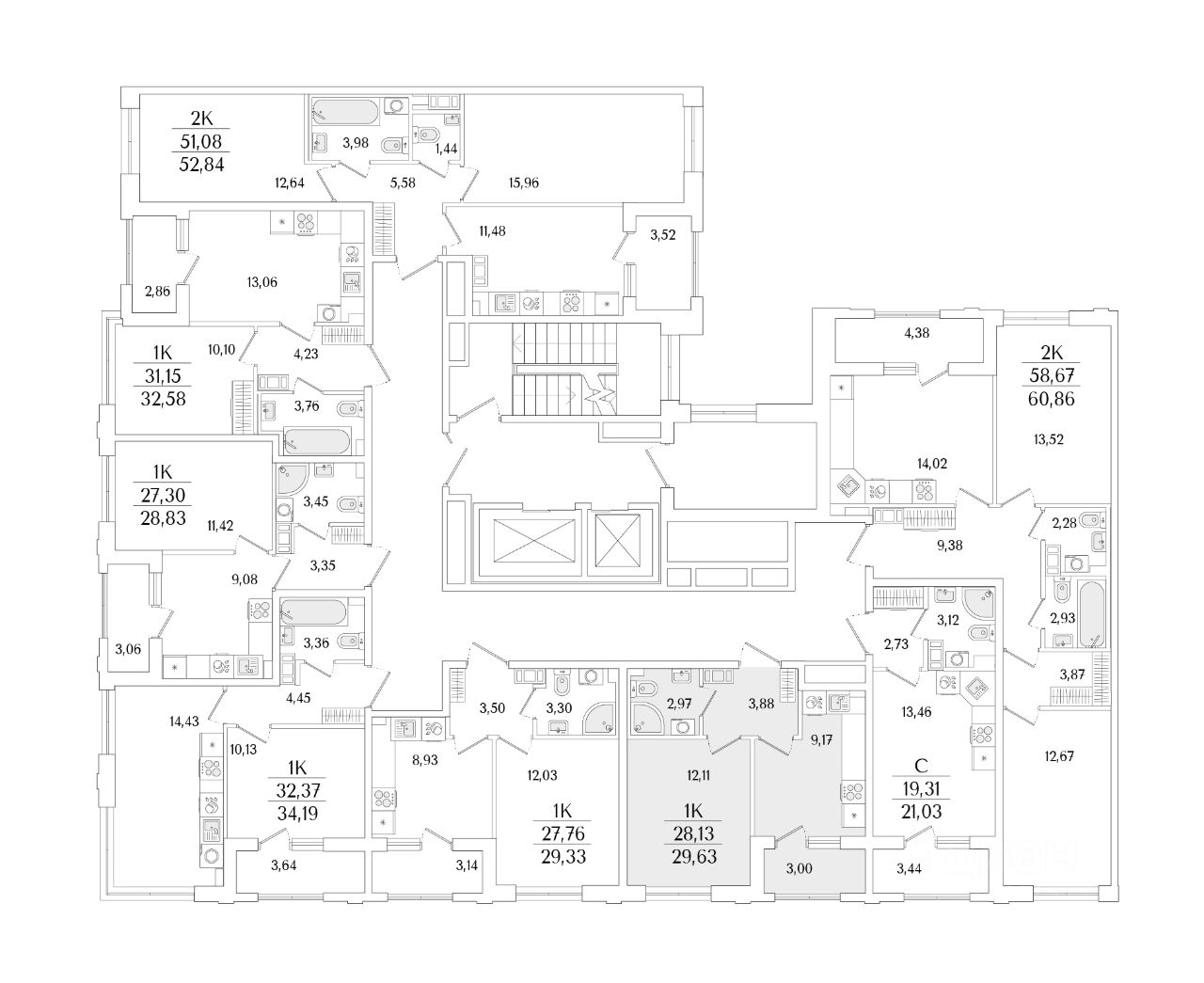 Кухни-гостиные с угловым остеклением. Просторные кухни-гостиные площадью более 20 м². Студии с двумя окнами. Ванные с окном Clerestory. Кухни-гостиные с выделенной нишей под кухню. Спальни с выделенной многофункциональной зоной, в которой можно организовать свой идеальный уголок. Квартиры с просторными лоджиями правильной квадратной формы.
