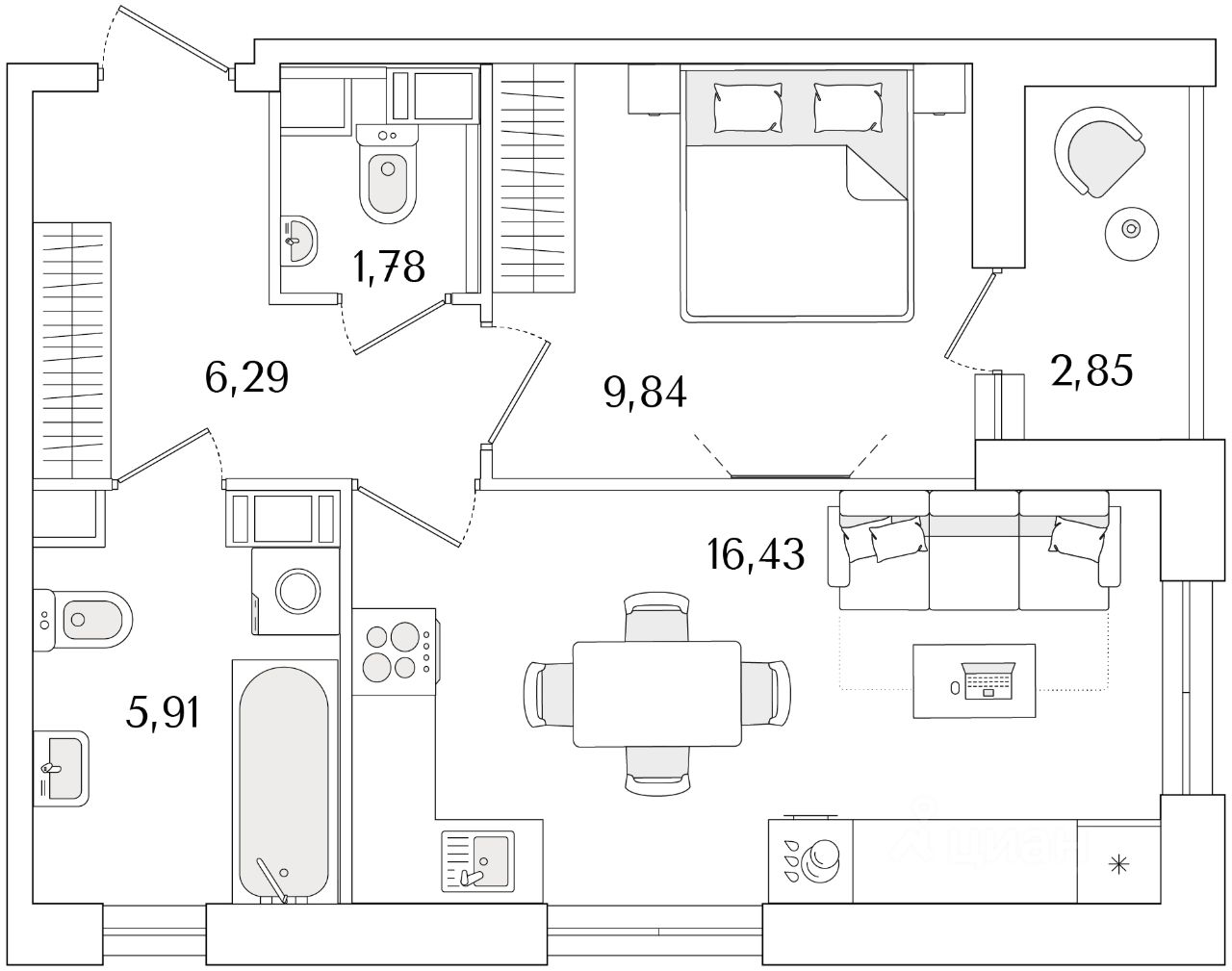 Продаётся 1к.кв. в ЖК Кинопарк от застройщика Холдинг ''РСТИ'' (Росстройинвест). Квартира находится в 9 этажном доме, в Очередь 2, Корпус 1 на 5 этаже. Общая площадь квартиры 41,68 кв.м.