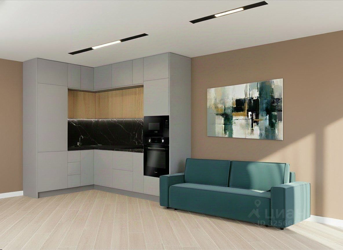 Просторная кухня-гостиная (19кв.м) с современным кухонным гарнитуром, выполненным на заказ (стоимость 640 тыс.руб.: встроенный холодильник, бытовая техника, МДФ фасады), обеденной зоной и зоной гостиной с изысканным диваном (стоимостью 85 тыс.руб). Мастер-спальня (площадью 16,6 кв.м) с собственной большой гардеробной и гостевая комната/детская (14,9 кв.м) также с застекленным балконом. Так же в квартире есть отдельно французский балкон с возможностью выйти на него из кухни и из мастер спальни.