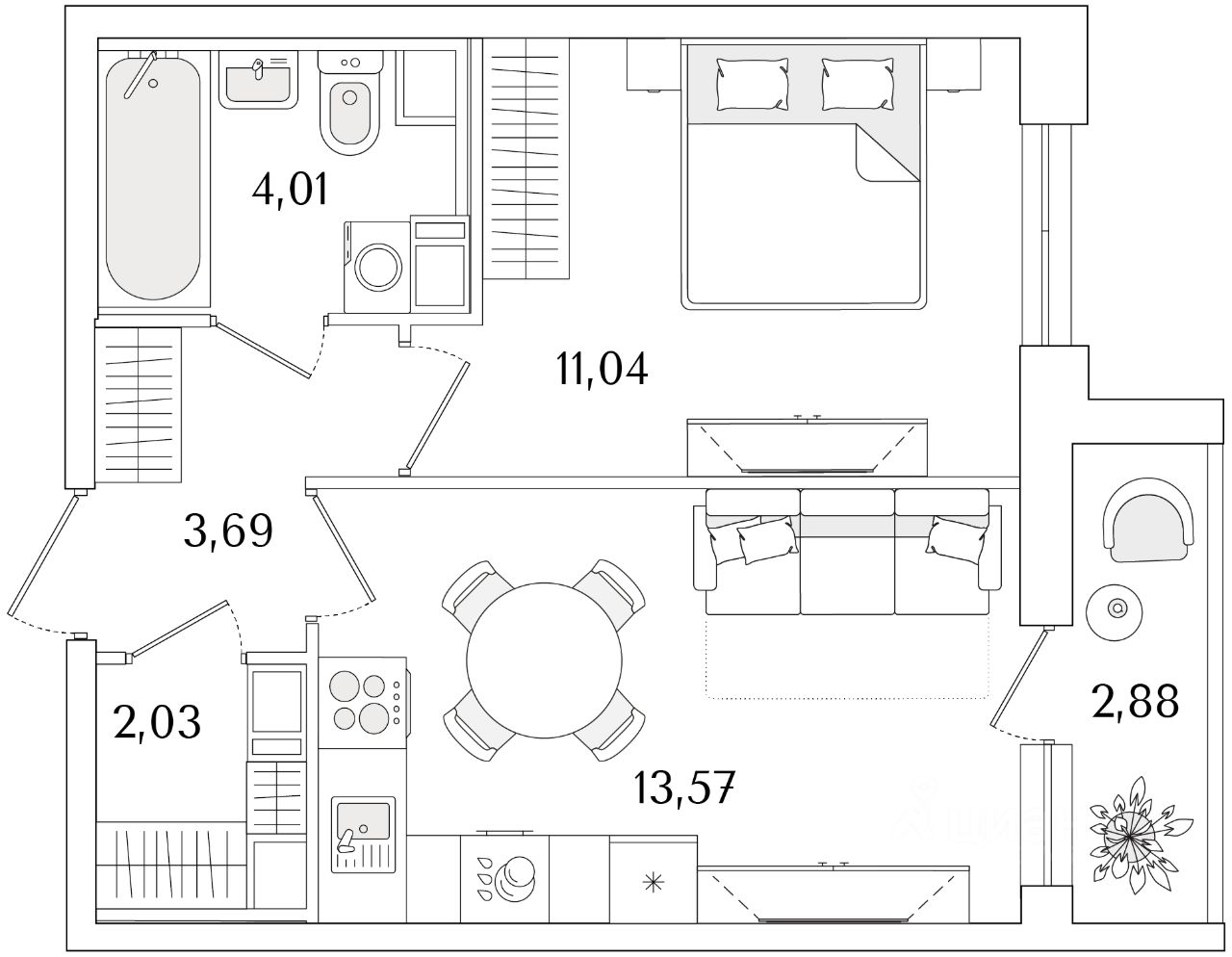 Общая площадь35,78 м2