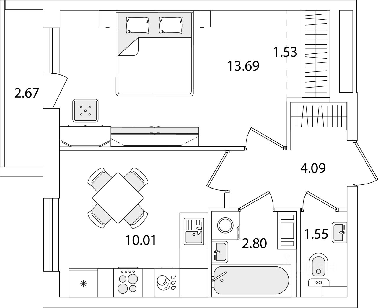 Жилая площадь13,7 м2