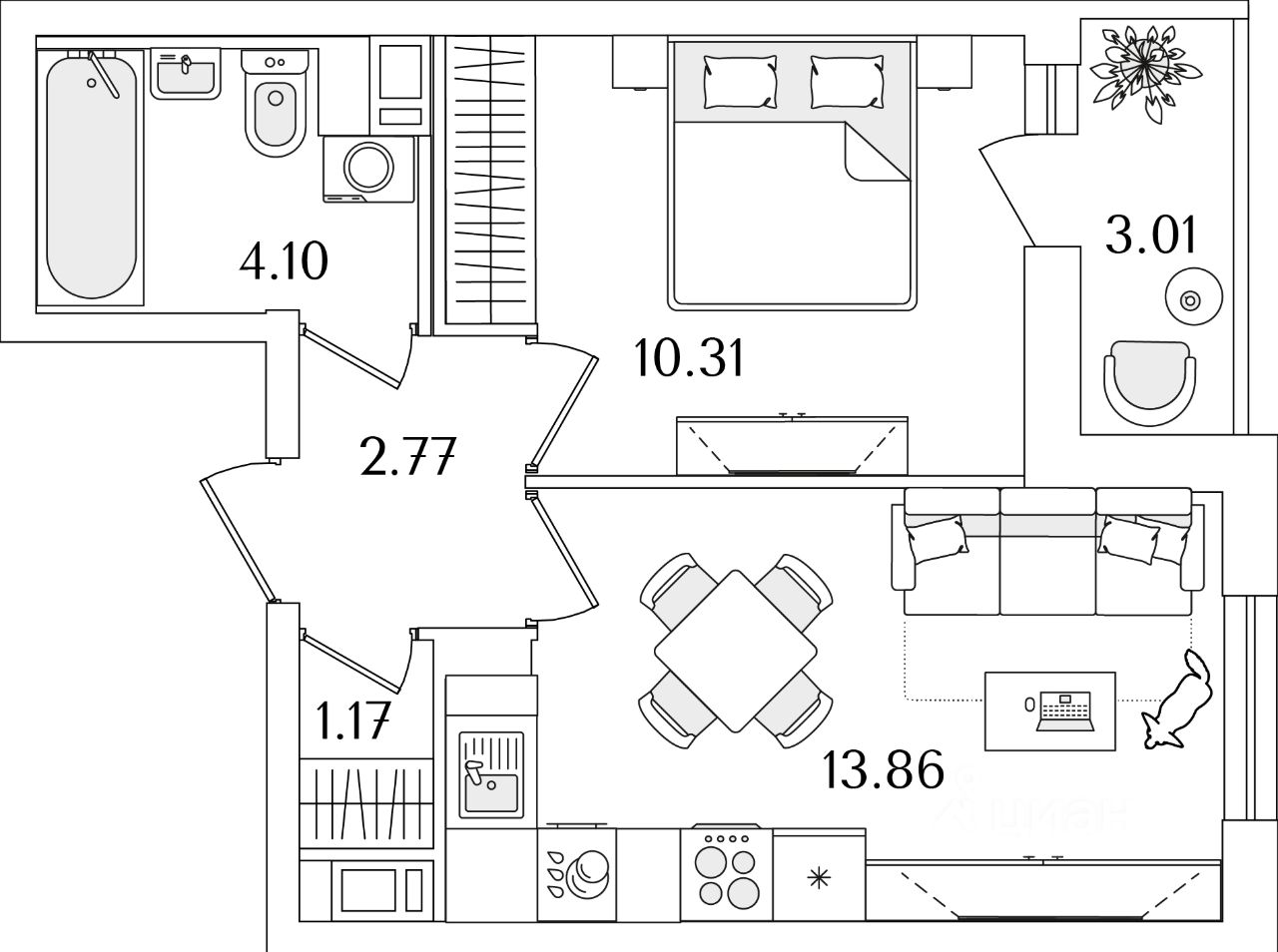 Жилая площадь10,3 м2