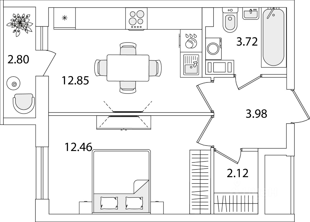 Жилая площадь12,5 м2
