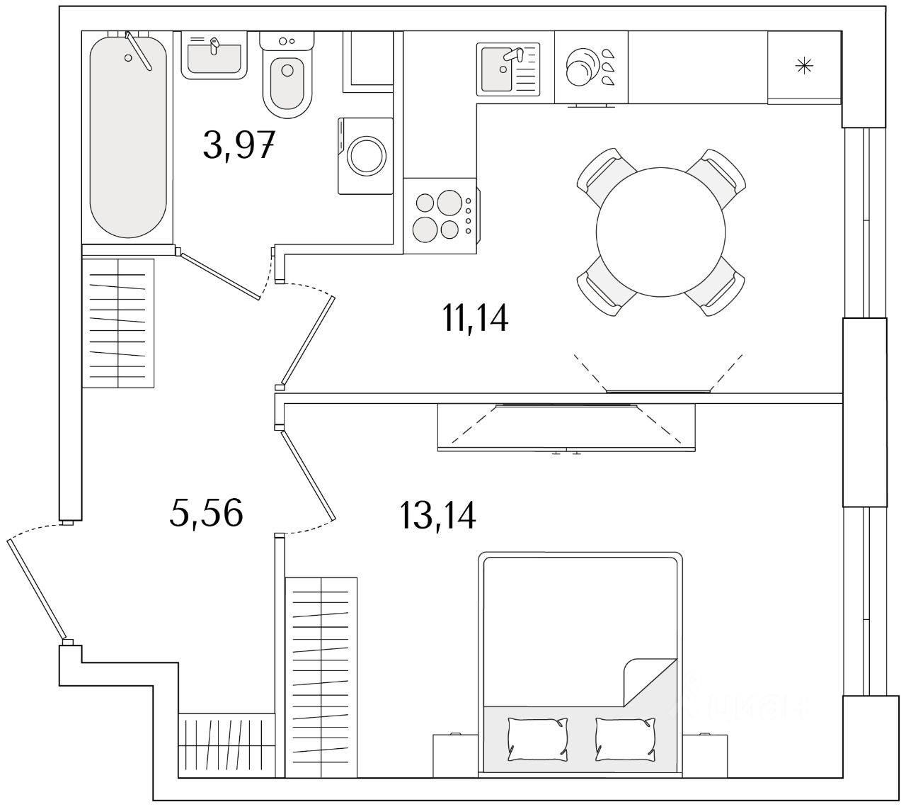 Общая площадь33,81 м2