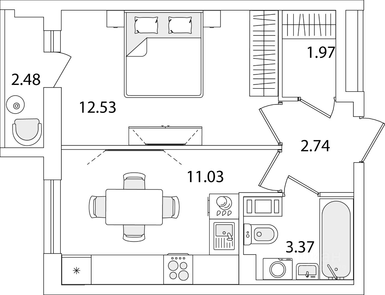 Продаётся 1к.кв. в ЖК Кинопарк от застройщика Холдинг ''РСТИ'' (Росстройинвест). Квартира находится в 9 этажном доме, в Очередь 1, Корпус 1 на 8 этаже. Общая площадь квартиры 32,88 кв.м.