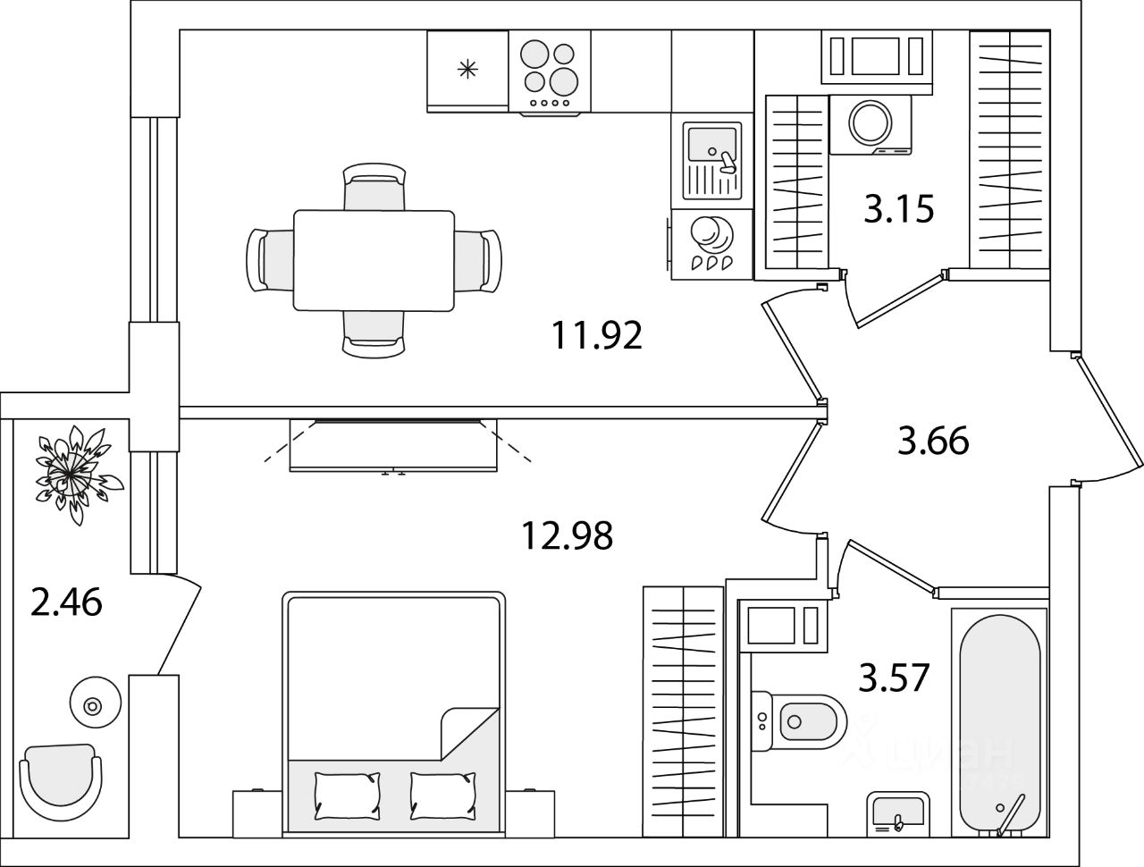 Общая площадь36,51 м2