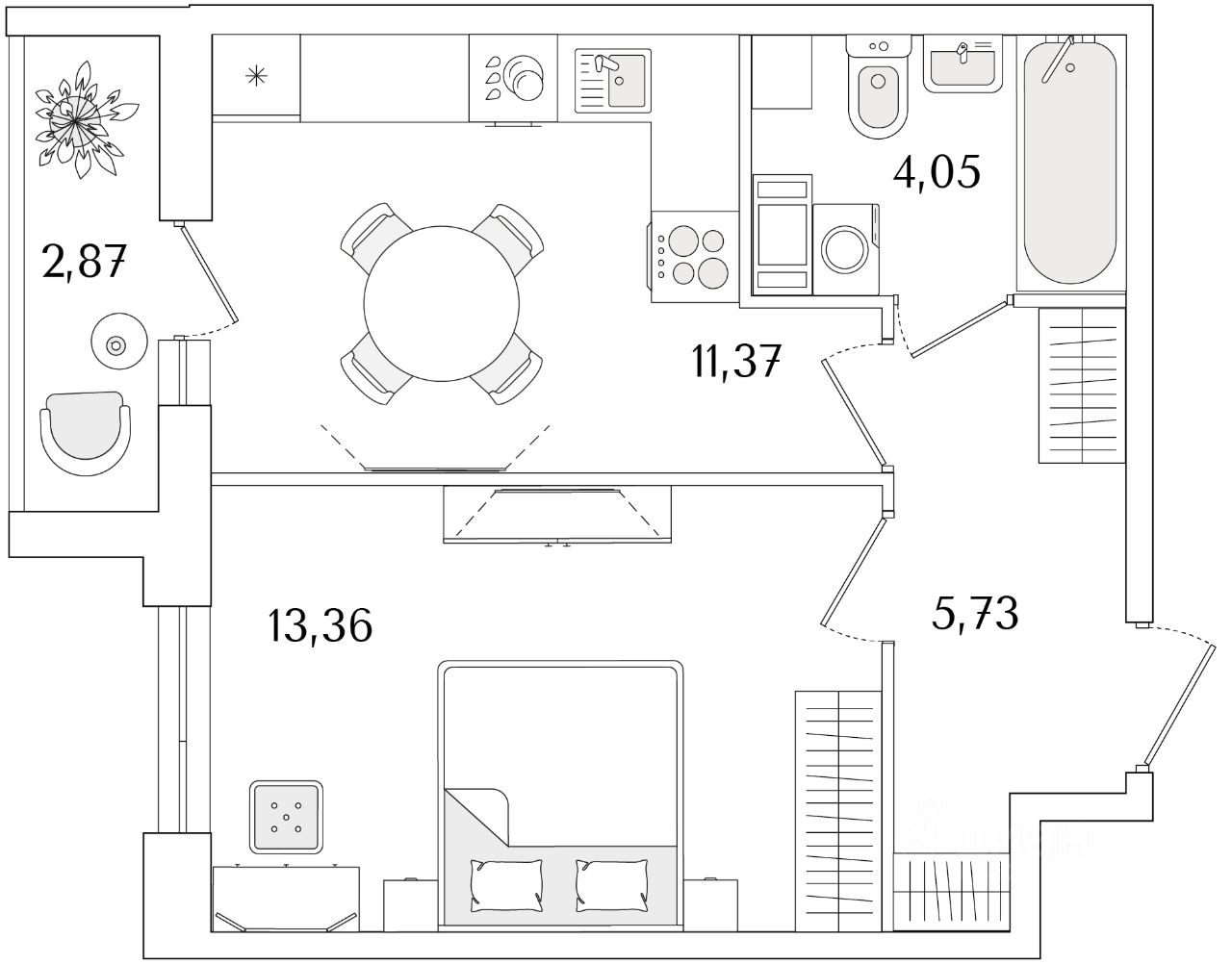 Общая площадь35,95 м2