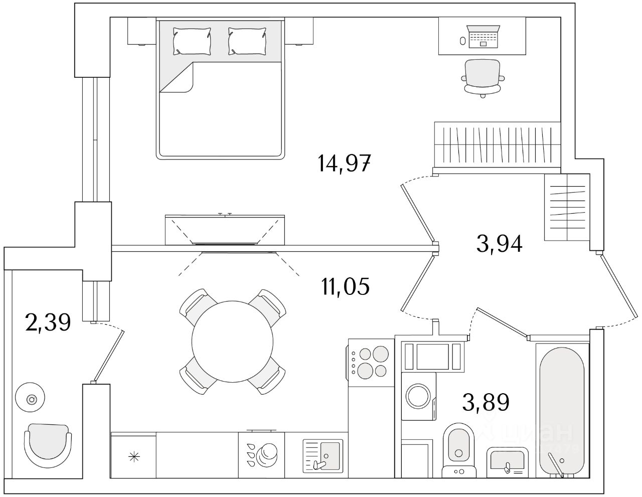 Общая площадь35,05 м2