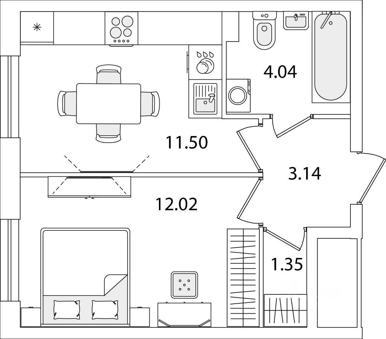 Жилая площадь12 м2