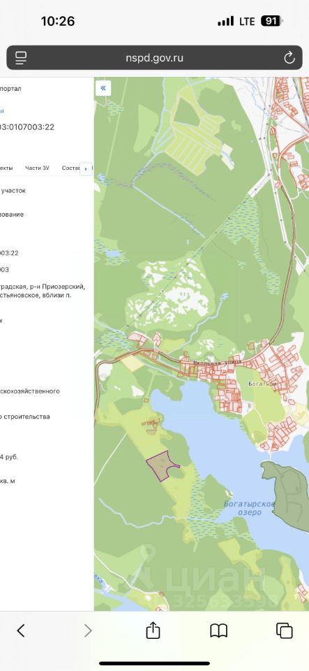 Адрес объекта отсутствует на Яндекс картах, поэтому указан ближайший. Точный адрес: по координатам 61.08907 и 29.84586 или обл. Ленинградская, р-н Приозерский, с/пос. Севастьяновское, вблизи п. Богатыри