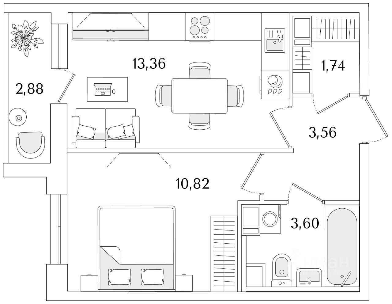 Общая площадь34,52 м2