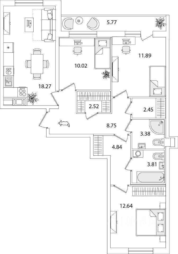 Продаётся 3к.кв. в ЖК Кинопарк от застройщика Холдинг ''РСТИ'' (Росстройинвест). Квартира находится в 9 этажном доме, в Очередь 1, Корпус 1 на 8 этаже. Общая площадь квартиры 81,11 кв.м.