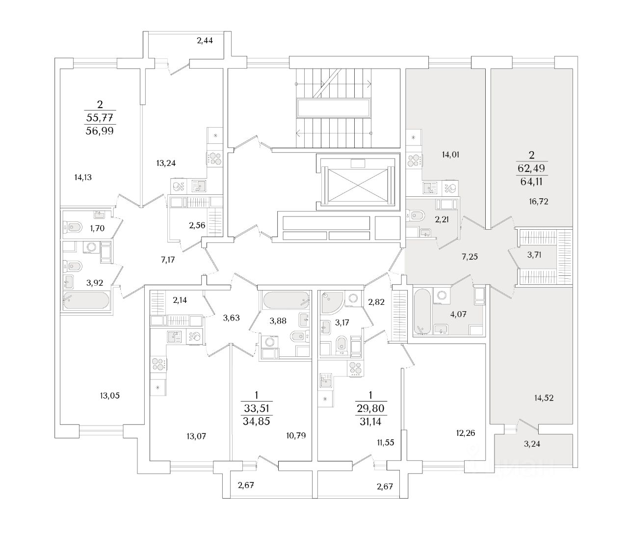 Общая площадь64,11 м2