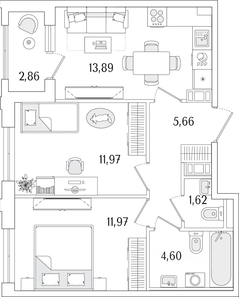 Общая площадь51,14 м2