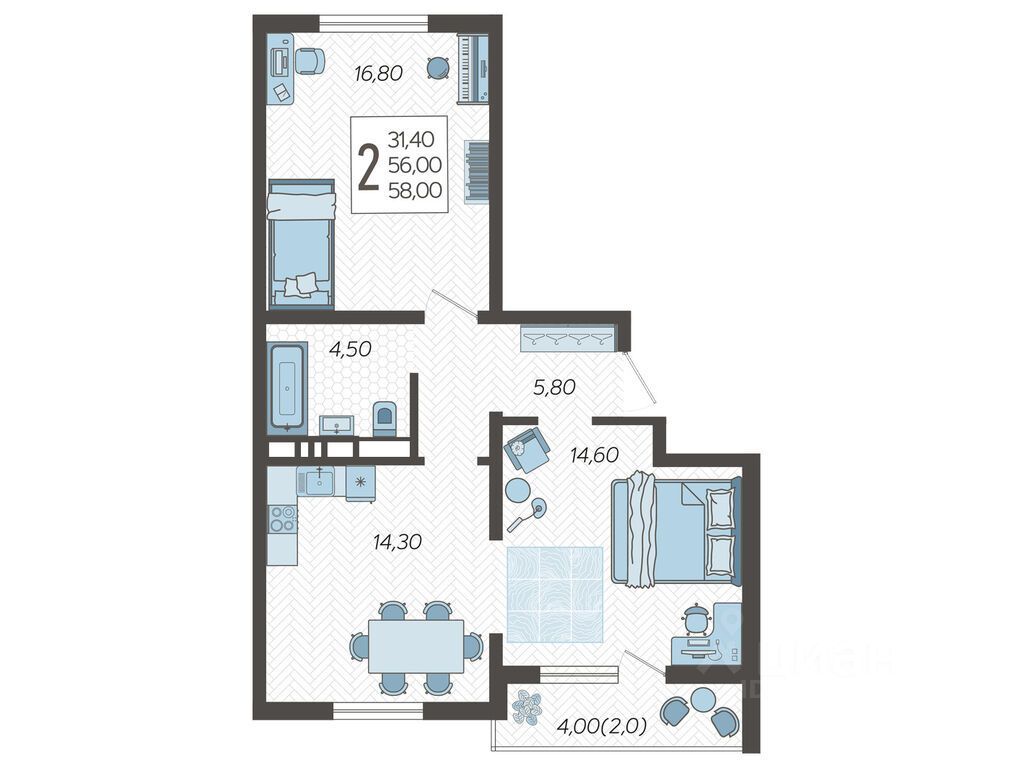Жилая площадь31,4 м2