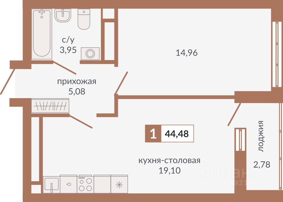 Общая площадь44,48 м2