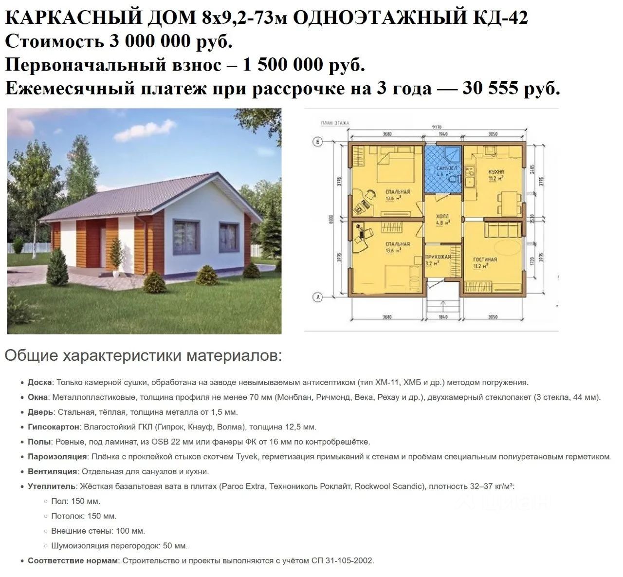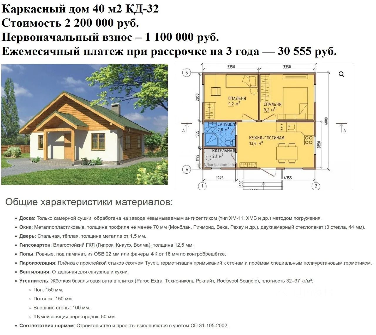 Первый взнос — 50%.